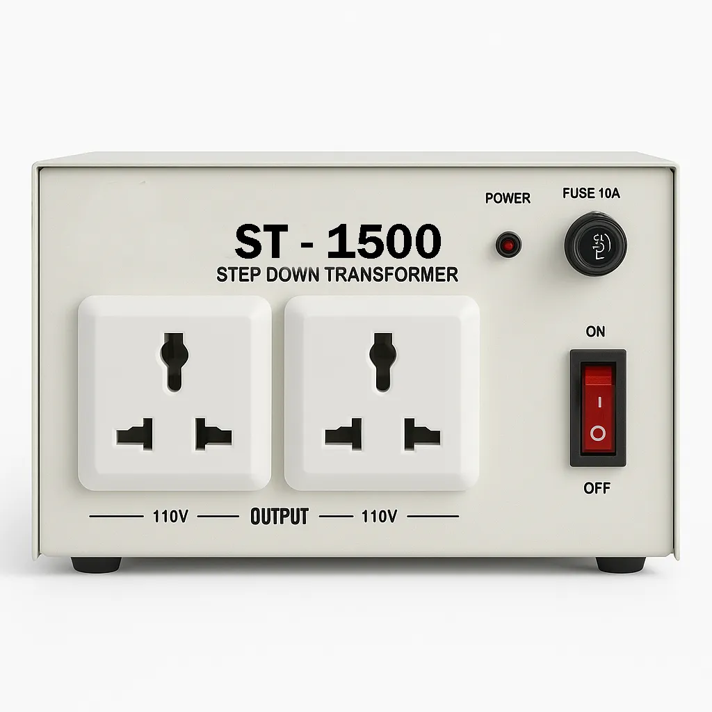 The 1500 Watts Step Down Transformer is a high-capacity voltage converter engineered to safely power demanding 110V electronics and appliances in 220V–240V environments. Designed for robust performance in workshops, professional kitchens, home theaters, and studios, this transformer delivers stable and reliable voltage conversion for high-wattage equipment. Built with a heavy-duty steel chassis, advanced cooling ventilation, and comprehensive safety features including overload and thermal protection, it provides a dependable power solution for operating powerful imported devices such as kitchen appliances, workshop tools, audio systems, and entertainment equipment.